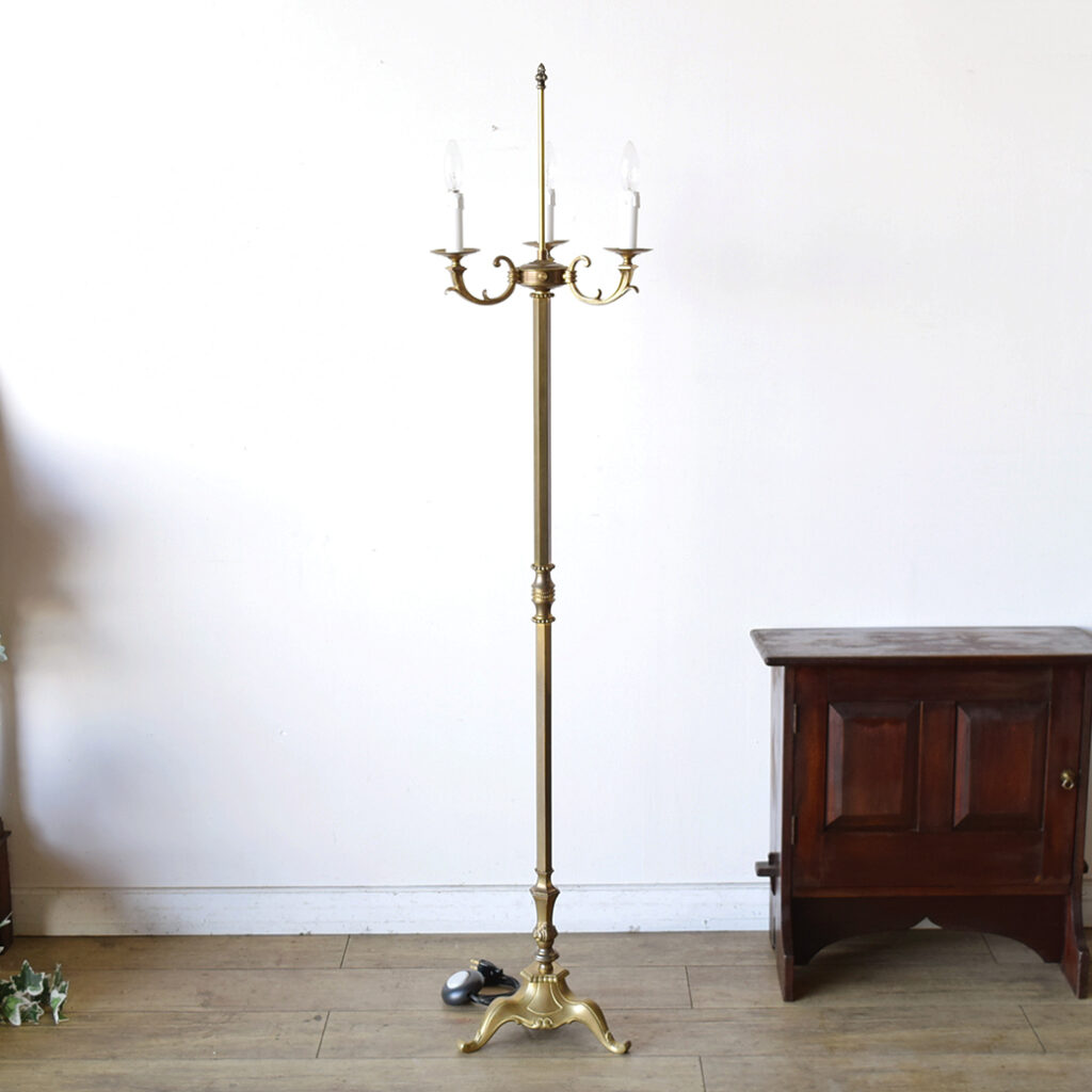 真鍮の重厚感とクラシカルなデザインが魅力の3灯式フロアランプ。