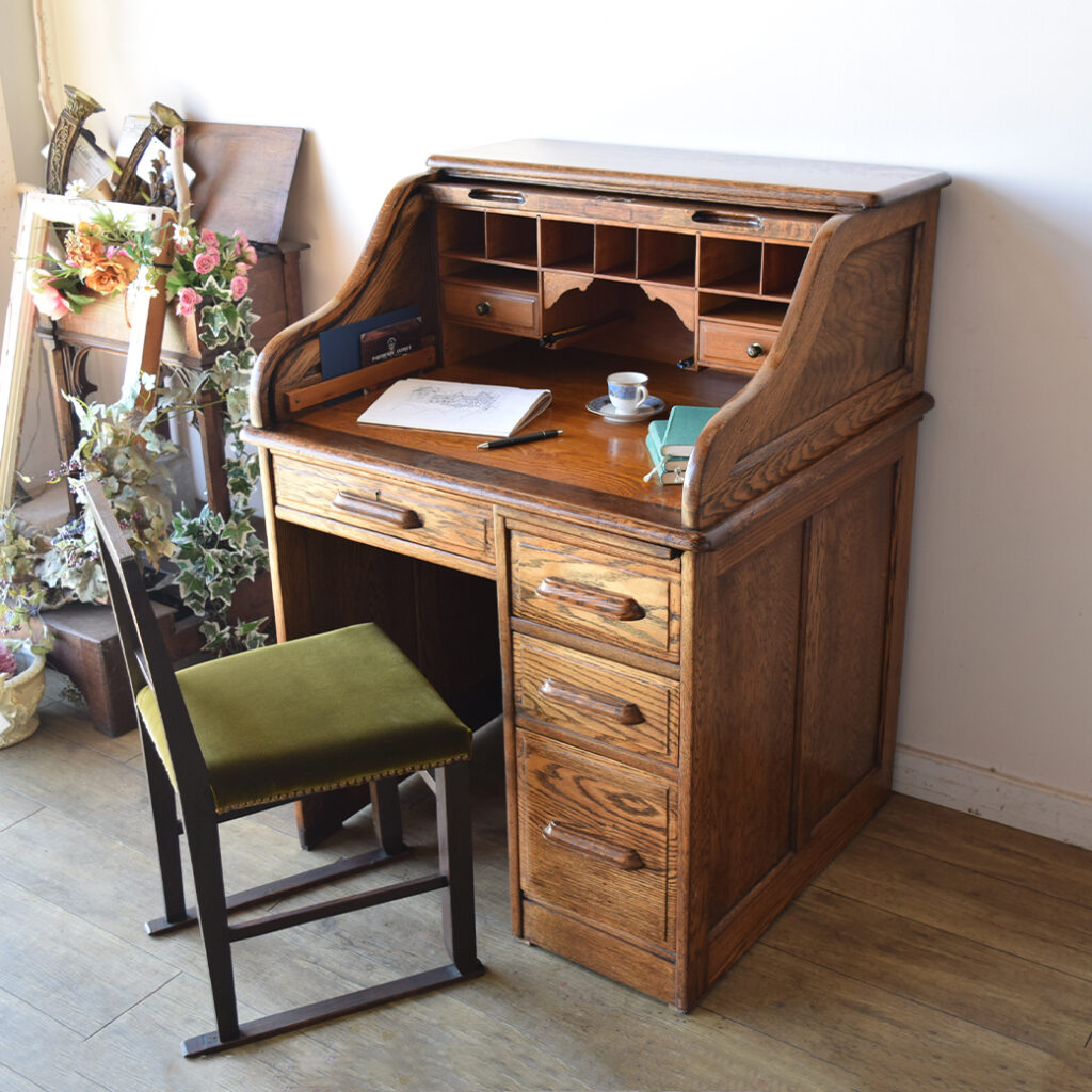 アンティーク家具の中でも大変珍しい子供サイズのロールトップデスク。