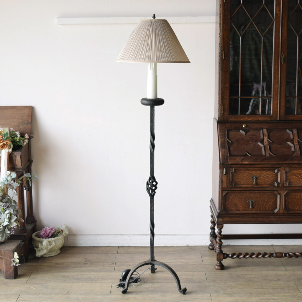 静かに、けれど確かな存在感を放つ、鍛鉄(ロートアイアン)のフロアランプです。