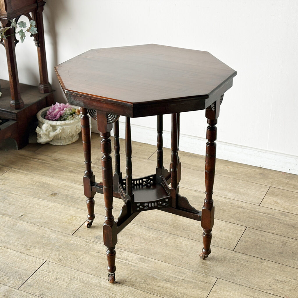 凛とした八角形のシルエットが、お部屋に心地よい緊張感と気品を添えるサイドテーブルです。