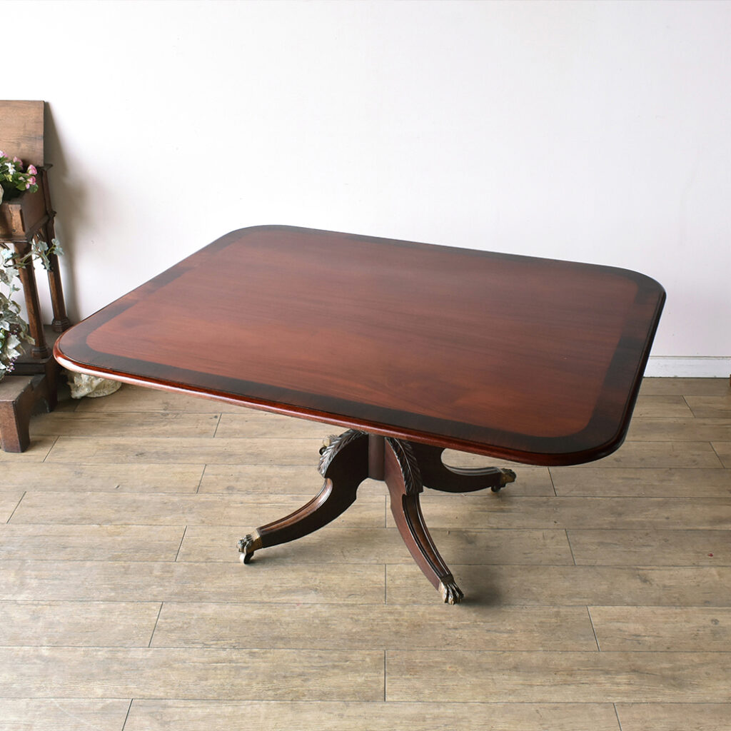 中央の支柱からしなやかに伸びる脚部や足元の真鍮製クロウフットなど、細部に至るまで当時の熟練した職人技が凝縮された逸品です。