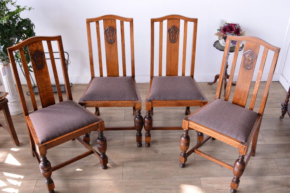 分厚いオーク材を贅沢に使用したダイニングチェア。イギリスらしい直線的なデザインで、非常に安定感があり見た目よりずしりとした重みがあります。