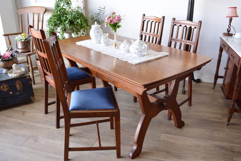 ドローリーフとは天板が両側に伸びるエクステンションタイプのテーブルのことを指し、イギリスでは定番のテーブルです。来客時や家族編成の増減などに合わせて対応できますので、一つ持っていれば臨機応変にずっとお使い頂けます。