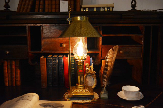 セットで付いているシェードはオリジナルです。スカートのフリルのようなデザインが可愛らしいですね!薄いスモークガラスなので電球の灯りを綺麗に演出してくれます。