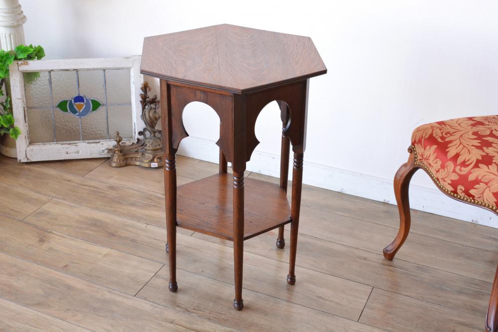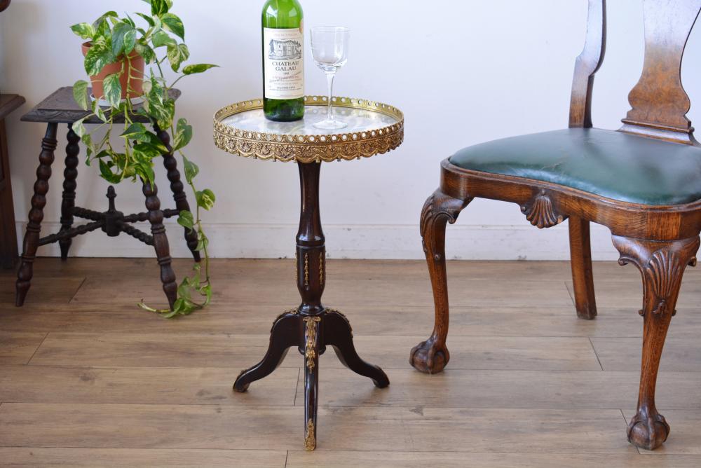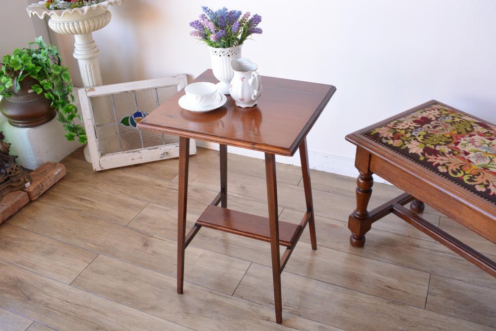 イギリスのエドワーディアン期に作られたテーブル。まず目を引くのが寸分の狂いもなく施された美しいインレイ(象嵌細工)…エドワーディアン期ならではの直線的な象嵌デザインがとてもクラシカルな印象ですね。天板を彫り、材やカラーを変えた別の木材をはめ込んでいくというその緻密な職人技もさることながら、こちらのテーブルは保存状態も非常に良かったので象嵌に欠けや剥がれは全く見受けられない素晴らしいコンディションです。
