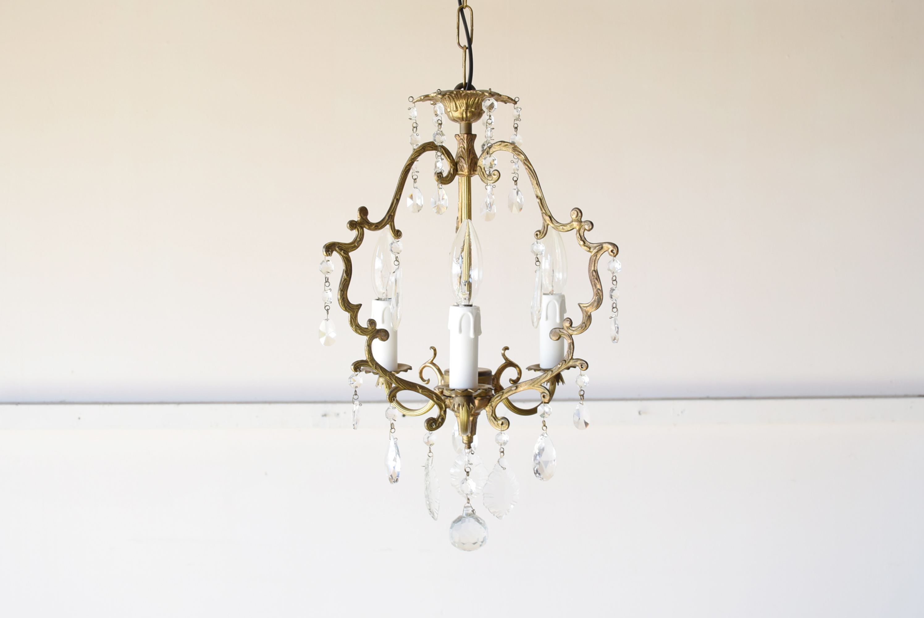 優美な真鍮の曲線とクリスタルの煌めき。空間を華やかに彩る1灯式ガラスシャンデリア【sy473】
